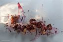 Pinceladas de rojo se desprenden de todas ellas: rojo de la violencia, rojo de la menstruación, el rojo de la herida, y también; el rojo de la acción y el enfado, que suscitan todas esos sucesos que se repiten en todo el mundo.